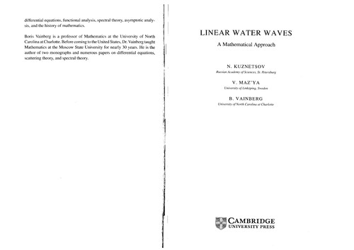 Linear water waves : a mathematical approach / N. Kuznetsov, V. Maz¡ya, B. Vainberg