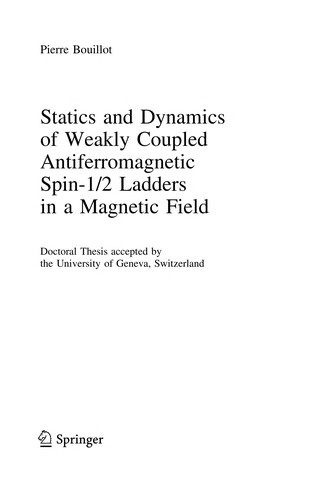 Statics and Dynamics of Weakly Coupled Antiferromagnetic Spin-1/2 Ladders in a Magnetic Field [electronic resource] / by Pierre Bouillot.