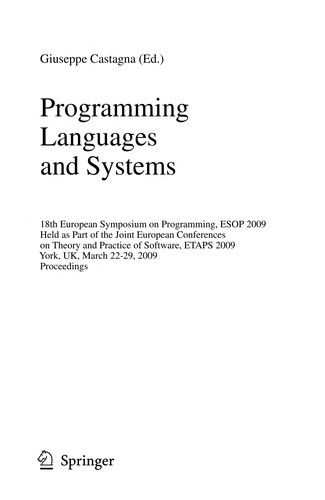 Programming Languages and Systems 18th European Symposium on Programming, ESOP 2009, Held as Part of the Joint European Conferences on Theory and Practice of Software, ETAPS 2009, York, UK, March 22-29, 2009. Proceedings
