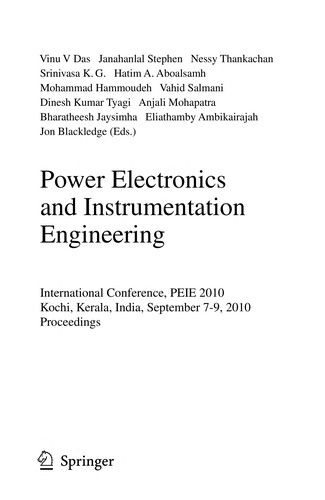 Power Electronics and Instrumentation Engineering International Conference, PEIE 2010, Kochi, Kerala, India, September 7-9, 2010. Proceedings