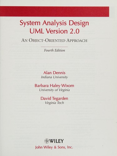 Systems analysis design, UML version 2.0 : an object oriented approach / Alan Dennis, Barbara Haley Wixom, David Tegarden.